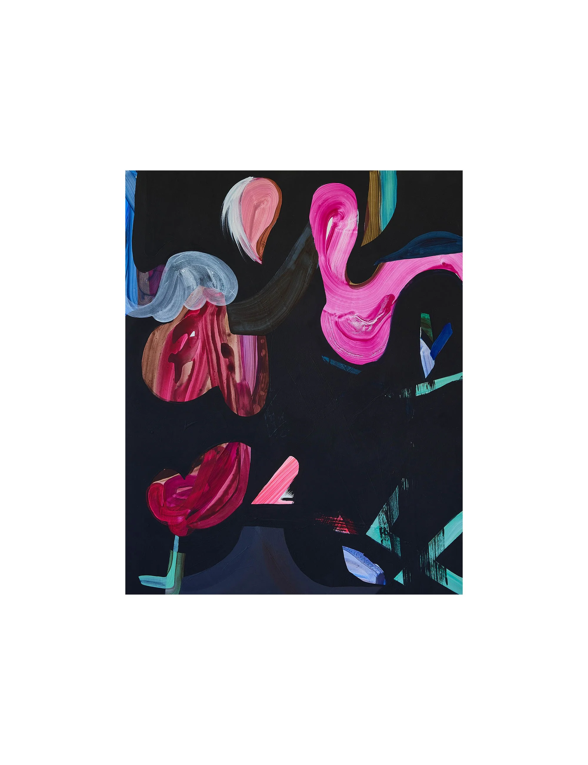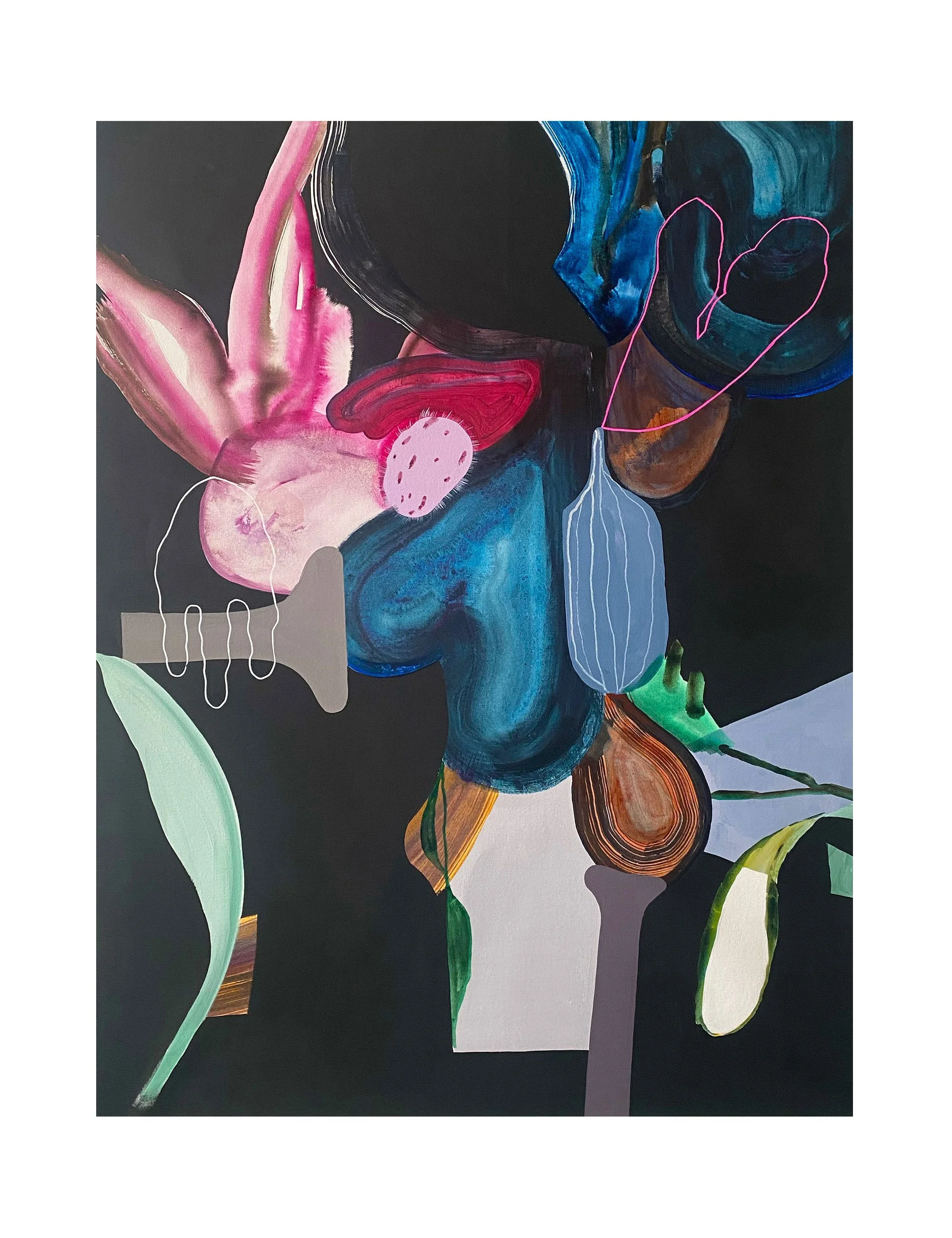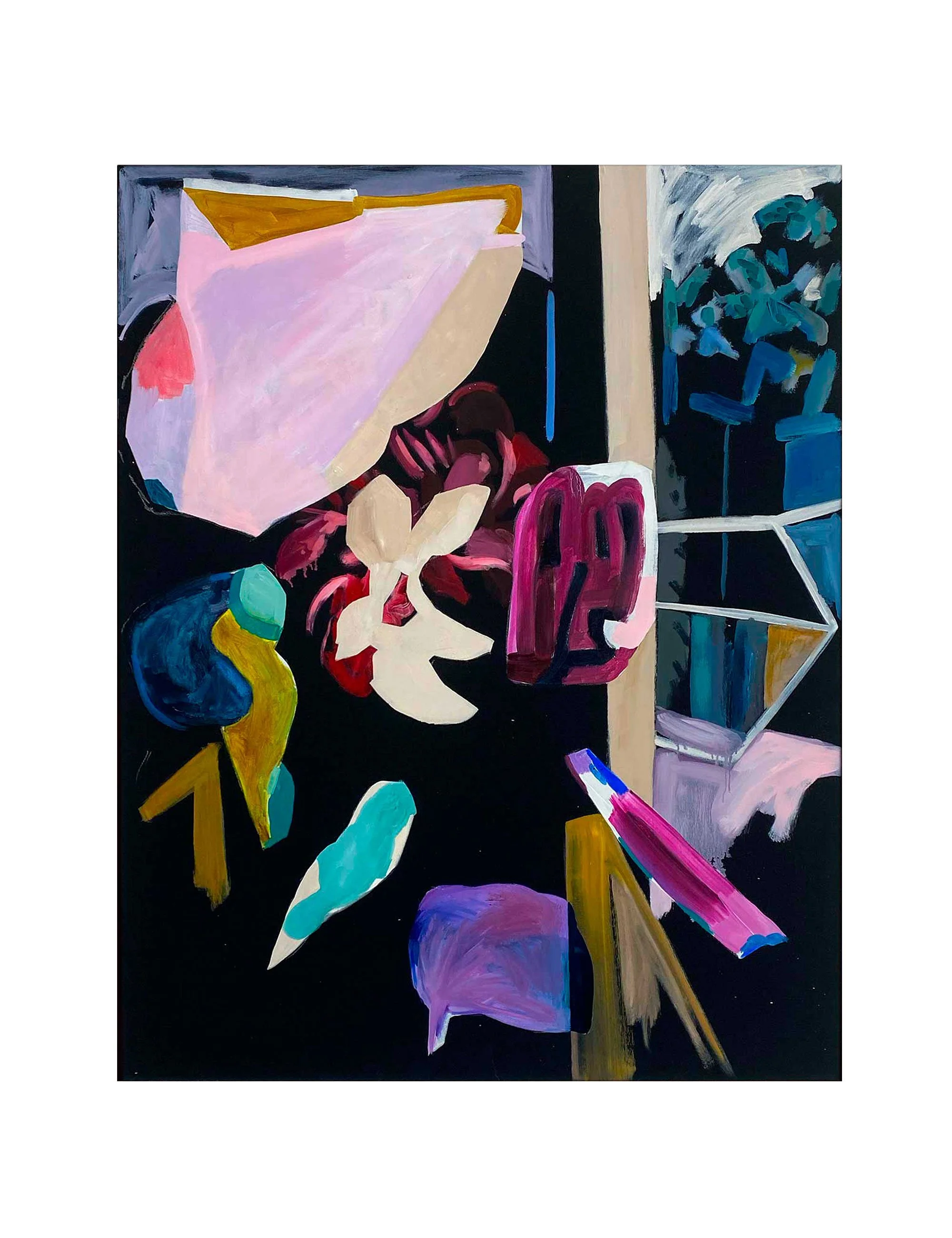 These paintings develop through improvisation and response, without a fixed image in mind. Forms emerge and reconfigure, drifting between the botanical, the bodily, and the domestic without settling into any one state. Fragments of still life and interior appear and recede, existing in an in-between space where recognition remains partial and unstable.